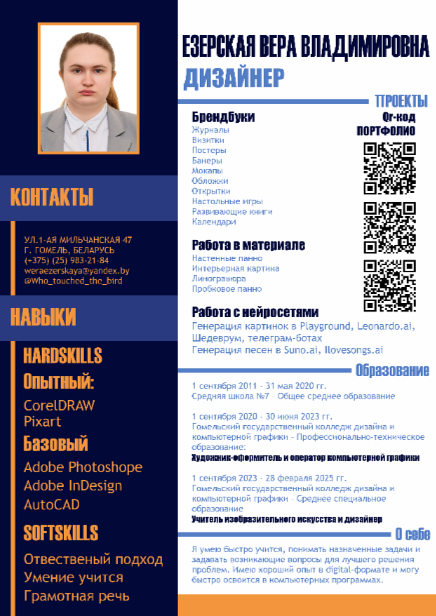 Печатник-оператор Графический дизайнер, оператор компьютерной графики