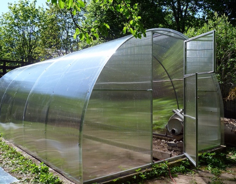 из оцинкованной трубы. Длина 4 м. Высота 2 м. Ширина 3 м. Каркас - оцинкованная цельносварная труба 20х20. Толщина стали 1,2 мм. Расстояние между дугами 0,95 м или 0,67 м,, новый товар.
