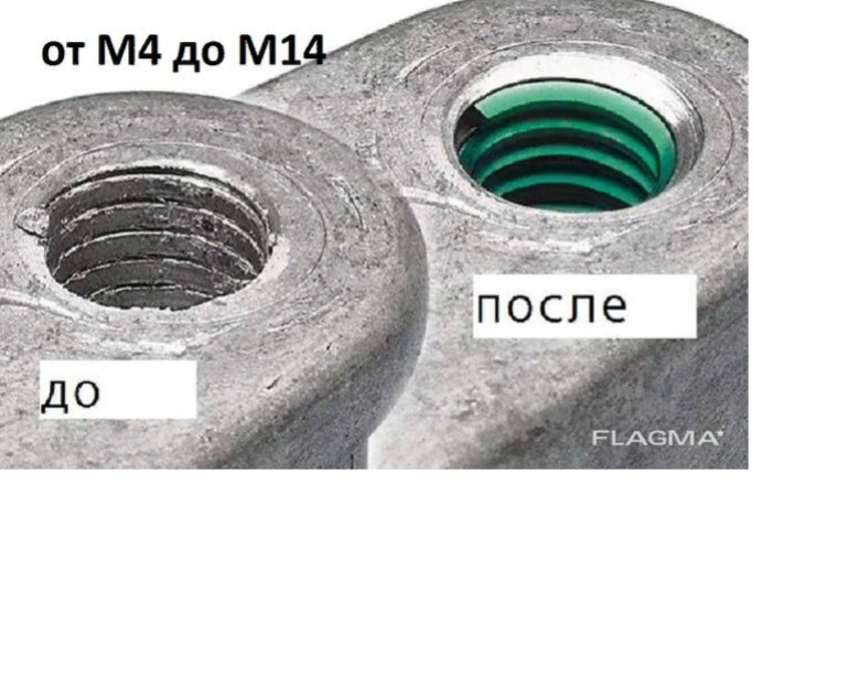 Эта технология позволяет восстановить резьбу в ее первоначальных размерах без замены деталей. Резьба после восстановления надежна в эксплуатации, ей не страшна коррозия и высокие температуры, износостойкая и прочнее на 20%. Мы можем помочь при ремонте отверстий под свечи накала, под свечи зажигания, болты крепления ГБЦ, болты крепления колес, натяжные ролики ремней, сливные пробки. Также ремонт резьбы будет эффективен в креплении всего навесного оборудования, алюминиевых деталей подвески, тормозных систем., УНП 491167214.