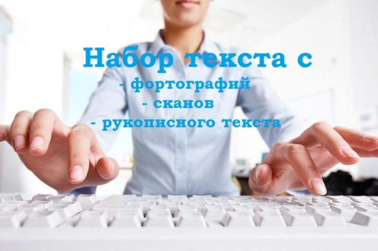 Набор производится с любых носителей (отсканированные документы, фото jpg, png, файлы pdf, txt, рукописи, картинки, текст с сайта и т.п.).