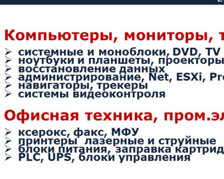 Диагностика, настройка, ремонт и тех. обслуживание : компьютер, ноутбук, планшет, монитор, телевизор, моноблок, принтер, МФУ, факс, блок питания, модем, коммутатор, материнская плата, винчестер, карта памяти, флэшка, зарядное устройство, телефон, TV тюнер, видеорегистратор, навигатор, бесперебойный источник питания , сварочный аппарат.