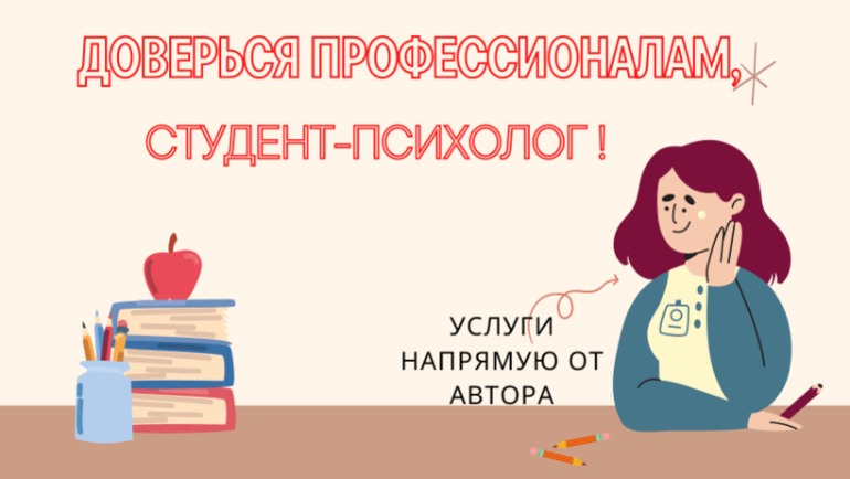 Качественно и в срок помогу выполнить все виды работ по психологии: от эссе и рефератов до магистерских диссертаций. Высокая уникальность. Презентация и речь к защите прилагается в качестве бонуса., Господарёва Н.В, УНП ЕА0290660.