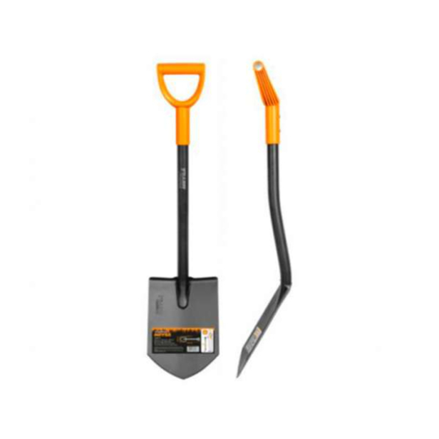 для копания каменистой, глинистой и твердой почвы. Заточенное лезвие позволяет легко копать и перерезать корни. Сварное соединение между лезвием и черенком обеспечивает прочность инструмента.