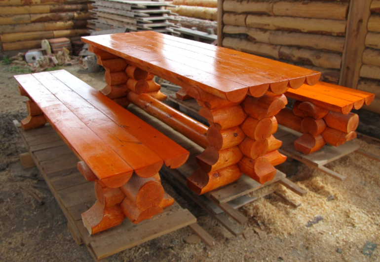 Производим и продаем наборы садовой мебели из оцилиндрованного бревна. В базовый комплект входит две скамьи и стол из оцилиндрованного бревна диаметром 160-200 мм, длиной 1800 мм, порода древесины - сосна. Размеры изделий могут быть как стандартные так и индивидуальные под определенные строительные объекты заказчика.