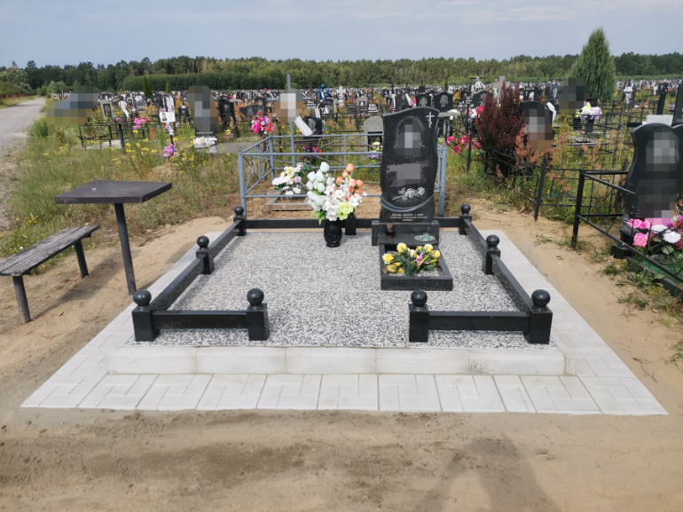 Выравнивание наклонившихся памятников, поправка провалившейся плитки (с частичной заменой новой плиткой).