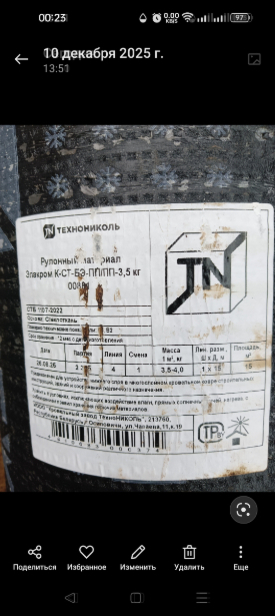 Рубероид Элакром основа стеклоткань, нижний слой, 15 метров в трубке. 5 трубок., новый товар.