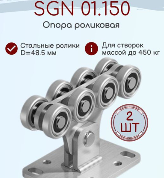 Роликовая опора Алютех со стальными роликами – ключевой компонент откатной системы, обеспечивающий перемещение створки самонесущих откатных ворот в нужном направлении. Модель SGN.01.150 рассчитана на использование со створками весом до 450 кг.