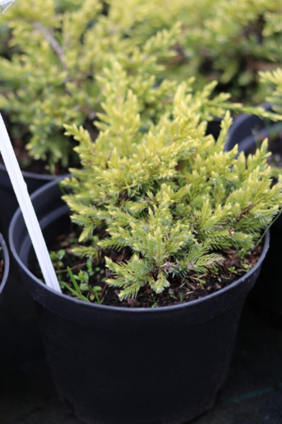 Можжевельник чешуйчатый Голд Тип – это вечнозеленый кустарник. Характерным признаком сорта является бело-желтый цвет весенних побегов, которые позже становятся серебристо-зелеными и сливаются с более старыми ветвями.