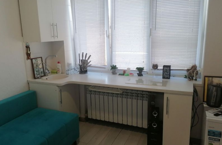 Новая индукционная варочная панель, кондиционер, новый холодильник, кухонные шкафы.