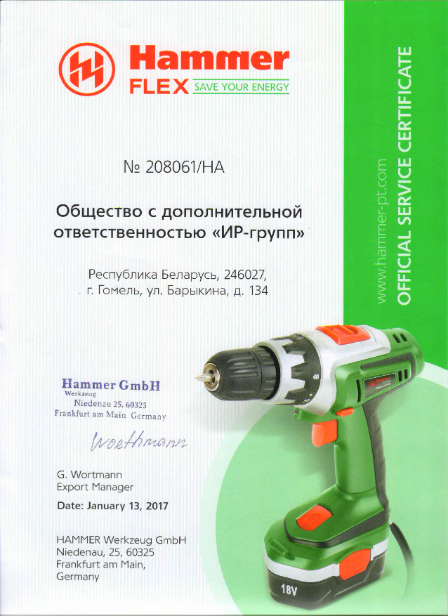 Гарантийный сервисный центр по ремонту электроинструмента торговых марок Wester, Hammer, Tesla, Military в г. Гомеле, ОДО "ИР-групп", УНП 490425479..