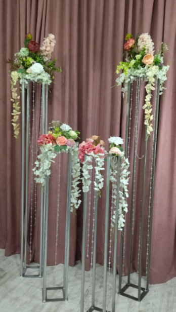 Аренда колонн металлических- 4 штуки комплект. На сутки. Металлические конструкции, большие, высотой ( вместе с цветами) 180см, малые- 110 см. Ширина 17×17 см. Искусственные цветы, бусины акриловые. Договор,чек.