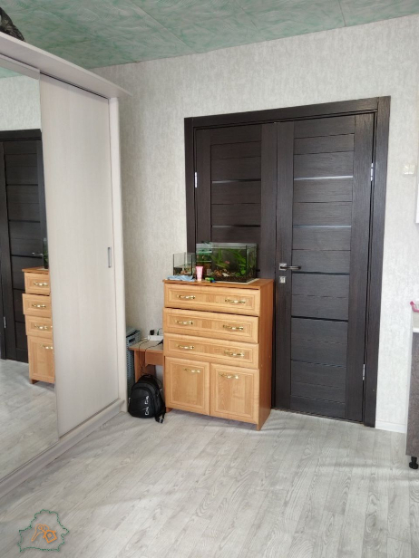 В комнате окно ПВХ, лоджия также застеклена с рамами ПВХ, металлическая входная дверь «Стальная линия», межкомнатная дверь шпон с замком, на полу линолеум, в санузле плитка, потолок декоративная плитка, косметический ремонт.