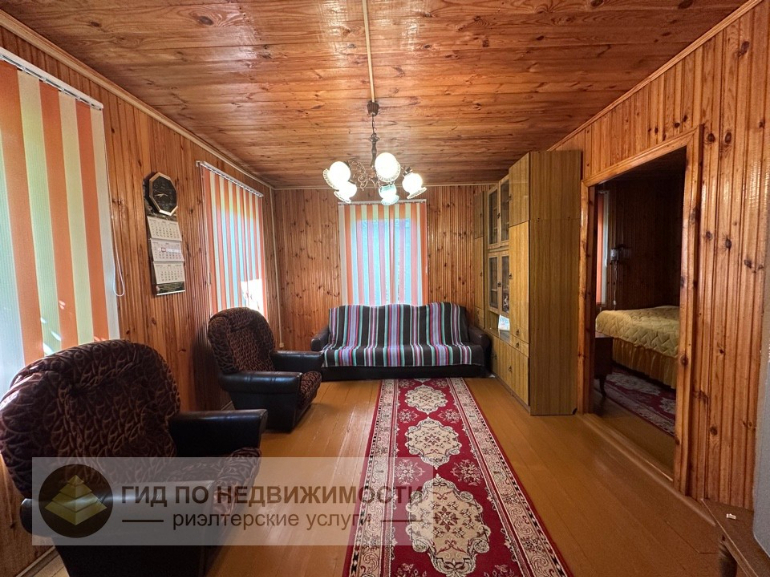 Дом бревенчатый 92.6 кв.м. В аккуратном и жилом состоянии. Состоит из одного этажа и мансарды. На первом этаже 4 комнаты, на мансарде - 1. Отопление – печное. Окна ПВХ. Санузел, душевая и сауна - в доме!!! Водоснабжение - скважина. Канализация - местная.