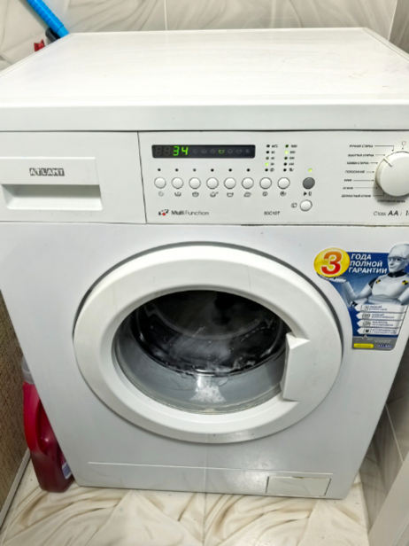 Стиральная машина "Атлант" со шлангами в рабочем состоянии. 10 лет. Работала мало. Оплата наличными.