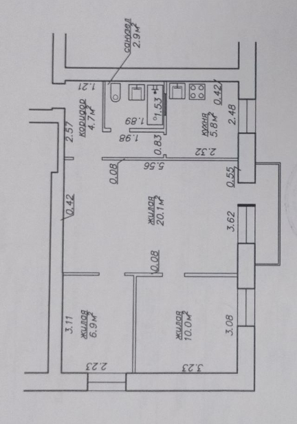 Общая площадь квартиры составляет 50,4 м?, жилая 37 м?, кухня 5.8м?.