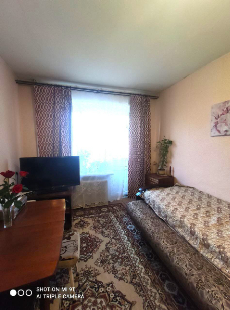 Квартира расположена на 4-м этаже пяти этажного кирпичного дома 1961 г.п. Общая площадь квартиры 55,76 кв.м. Жилая площадь 36,01 кв.м. Кухня 6,02 кв.м. Квартира состоит из трёх изолированных комнат, коридора, небольшой кухни и совмещенного санузла. Есть небольшой балкон. В доме уже прошёл капитальный ремонт. В квартире установлены окна ПВХ, одно из которых выходит на проспект Победы. Остальные окна выходят во двор. Есть интернет, домофон, счётчики на воду. Соседи спокойные. Двор очень зелёный, и в нём Вы всегда найдёте место для парковки автомобиля.