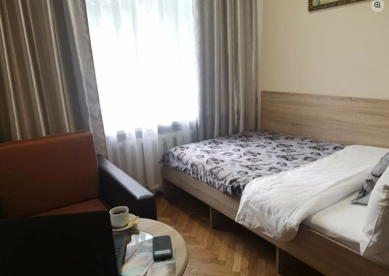 Площадь номера 12 кв.м., одна кровать (120 или 140 х200), кресло-кровать (60 х 200), телевизор, холодильник, шкаф, электрический чайник, чайная пара. Покрытие: паркет. Сан.узлел с душем. Полотенце, туалетные принадлежности.Прачечная, баня, спа процедуры, тренажерная площадка, детская площадка, стоянка и барбекю зона. Большой банкетный зал, большой конференц зал. Возможно размещение командировочных.