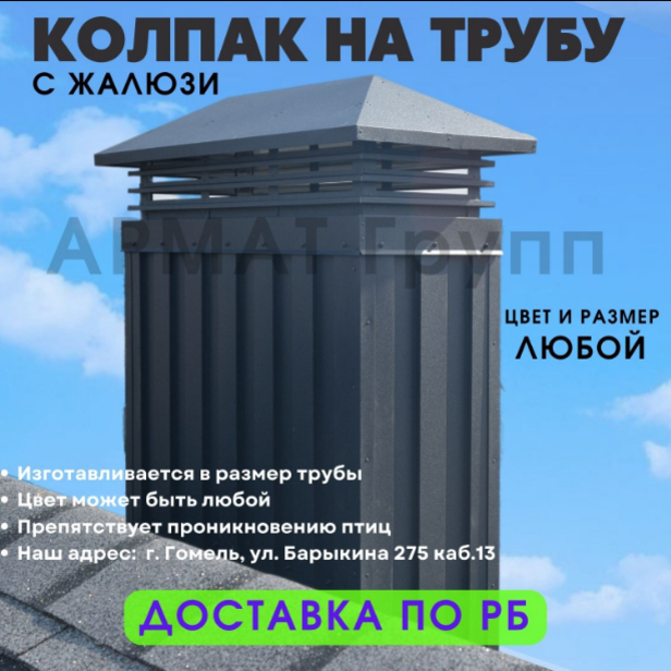 Зонт вентиляционный. (Евроколпак). Колпак на трубу с жалюзи Колпак, зонт, дымник на трубу, дымовую, каминную. Колпак на трубу. КАЧЕСТВЕННЫЙ МАТЕРИАЛ, оригинальный колпак, нестандартное исполнение. Из оцинкованной стали с полимерным покрытием 0,45—0.5 мм. ЦВЕТ: белый, коричневый, зеленый, красный, кирпичный, гранатовый, бордовый, серый, синий, оцинкованный и другие цвета. Глянцевые и матовые цвета. Другие доборные элементы для кровли:. - конек фигурный;. - конек плоский;. - торцевая планка (ветровая планка); - карнизная планка (капельник); - лобовая планка;. - снегодержатель; - планка примыкания;. - уголок наружный (50х50, 40х40, 30х30 и любой другой);. - уголок внутренний;. - отлив на окно;. - отлив на цоколь;. - колпак на столб;. - парапет на забор;. - дымник;. - колпак на трубу;. - зонт на трубу;. - вентиляционные трубы (круглые и квадратные);. - врезка трубы в плоскость(для герметизации выхода трубы на крышу). и любые другие планки по Вашим размерам., новый товар..