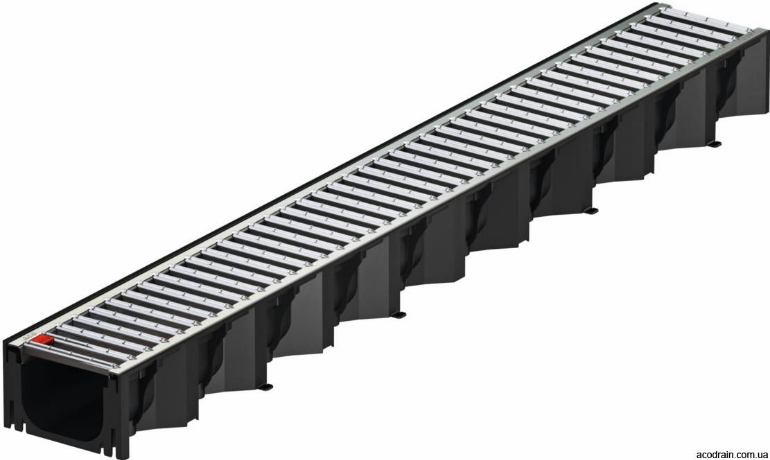 Канал PE-HD 100 см с оцинкованной решеткой Система водоотвода ACO SELF Hexaline из пластика PE-HD. Производство РФ. Канал PE-HD 100 см с решеткой. Цвет черный с пластиковой- 15 руб. 50 коп., оцинкованной- 17 руб. 50 коп., чугунной- 29 руб. 90 коп. решёткой. Набор- 15 руб. аксессуаров Hexaline/ 2торц.заглушки, сито для листьев, выпуск 110мм, PE-HD, новый товар..