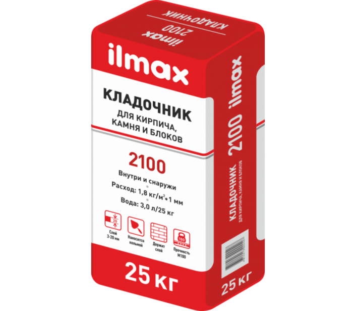 Назначение. ilmax 2100 предназначен для кладки внутренних и наружных стен и перегородок из керамического и силикатного кирпича (камней, блоков), керамзитобетонных и ячеистобетонных блоков, ФБС, блоков вибропрессованных из тяжелого бетона, природного и искусственного камня, в том числе для выравнивания оснований под кладку первого ряда. Может применяться для устранения дефектов (выбоин, сколов) в кладке. Область применения. Рекомендуется в качестве подстилающего слоя при опирании сборных железобетонных конструкций (плит перекрытий, элементов лестниц, балок и прогонов и т.п.) на несущие стены, для заполнения швов и стыков при монтаже сборных ЖБК, для устройства рядовых и арочных перемычек в кладке., новый товар.