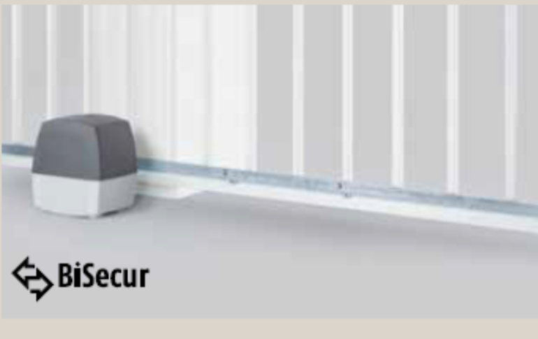 Привод откатных ворот • Привод откатных ворот с современной радиосистемой BiSecur. • Для ворот высотой до 2000 мм и шириной до 6000 мм. • Вес створки макс. 300 кг. • Плавный пуск и плавная остановка. • Регулируемое ограничение усилия. • Возможность программирования функции для прохода людей. • Профили зубчатой рейки в зависимости от исполнения / ширины ворот должны заказываться отдельно, новый товар..