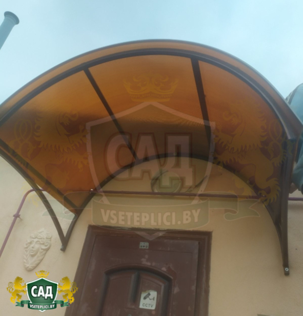 Материал: металлический. Козырек по форме Скат или Арка. Труба: 25х25. Ширина Кепки : 1.4, 1.6, 1.8 2,0м. Высота: Скат 0,4 м Арка 0,87м. Выпуск: до 1.0 м. • Каркас: усиленная труба 25х25 мм. с укосами. • Покрытие металла: цинк или полимер (антик/медь) сочетается с любым цветом фасада. • Материал верха: сотовый поликарбонат 4мм, 6 мм. • Цвет: Бронза, Тонированный. • Крепление покрытия: саморезы с герметичными термошайбами. • Защита сот от грязи и пыли: перфорированная лента + торцевой профиль. Козырьки из поликарбоната, надежная защита и стильное дополнение. Входная группа играет важную роль в общем облике здания. Но подвергаясь воздействию атмосферных осадков, крыльцо и двери очень быстро теряют свою привлекательность. Существуют различные способы, позволяющие избежать столь неприятных последствий. Одним из самых простых и надежных является использование козырька из поликарбоната. В компании ВсеТеплицы можно заказать такие фасадные конструкции из поликарбоната. Цена указана за каркас без учета поликарбоната. Козырек поставляется в разобранном виде.