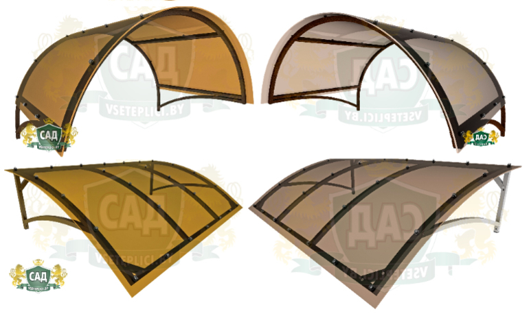 Материал: из поликарбоната. Козырек по форме Скат или Арка. Труба: 25х25. Ширина Кепки : 1.4, 1.6, 1.8 2,0м. Высота: Скат 0,4 м Арка 0,87м. Выпуск: до 1.0 м. • Каркас: усиленная труба 25х25 мм. с укосами. • Покрытие металла: цинк или полимер (антик/медь) сочетается с любым цветом фасада. • Материал верха: сотовый поликарбонат 4мм, 6 мм. • Цвет: Бронза, Тонированный. • Крепление покрытия: саморезы с герметичными термошайбами. • Защита сот от грязи и пыли: перфорированная лента + торцевой профиль. Козырьки из поликарбоната, надежная защита и стильное дополнение. Входная группа играет важную роль в общем облике здания. Но подвергаясь воздействию атмосферных осадков, крыльцо и двери очень быстро теряют свою привлекательность. Существуют различные способы, позволяющие избежать столь неприятных последствий. Одним из самых простых и надежных является использование козырька из поликарбоната. В компании ВсеТеплицы можно заказать такие фасадные конструкции из поликарбоната. Цена указана за каркас без учета поликарбоната. Козырек поставляется в разобранном виде.