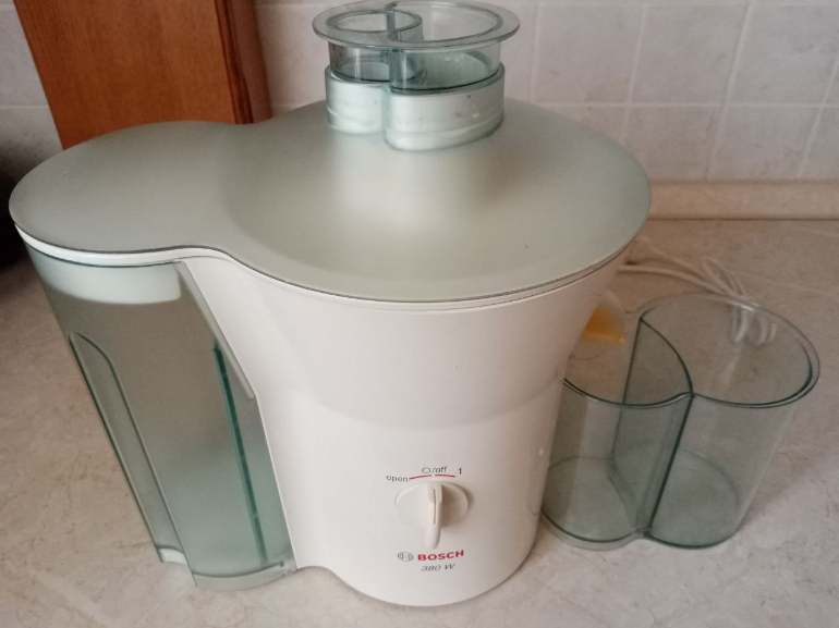 Соковыжималка Bosch MES 1020/02, в комплекте все на фото. Предназначена для сока из моркови и яблок. Материал корпуса, пластик.