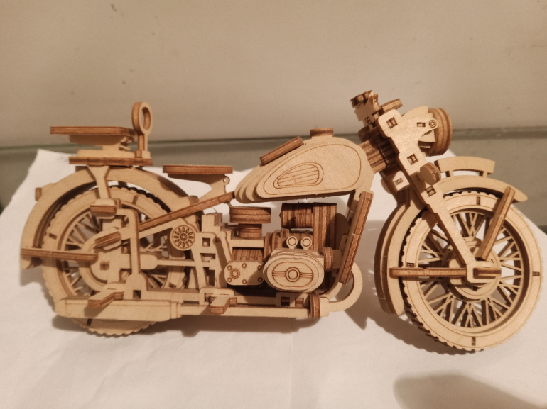 Колеса крутятся, переднее колесо слегка поворачивается влево и вправо.