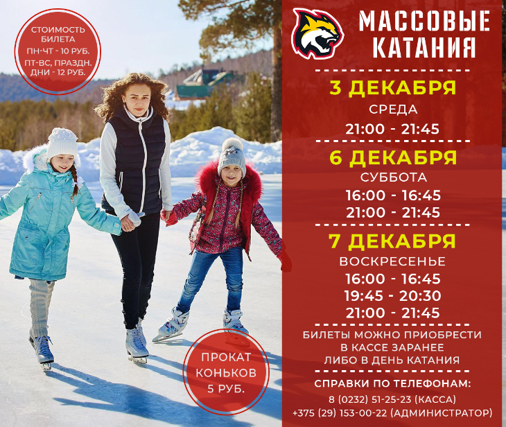 Расписание массовых катаний в Гомельском Ледовом дворце на этой неделе: