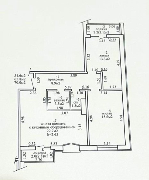 Жилая площадь:51,6 м²