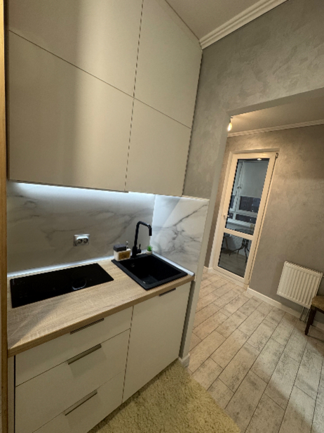 Кухня-бар оснащена вытяжкой, индукционной плитой и микроволновой печью. Красивый вид из окон, часто виден салют.