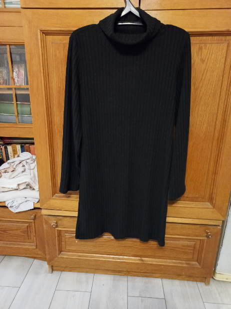 Платье женское трикотажное чёрного цвета. Прямого покроя Длина чуть ниже колена при росте 166-167 см. Воротник-хомутик. Размер 48-50 см. Б/у , в отличном состоянии. Торг уместен.