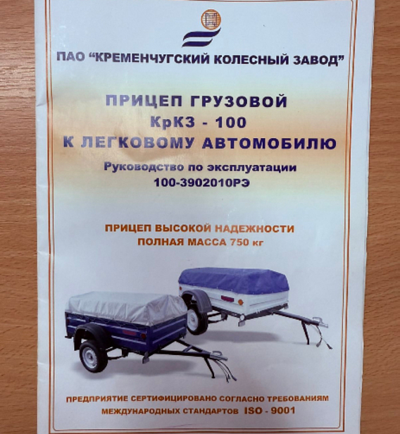 Прицеп грузовой КрКЗ-100 к легковому автомобилю. Прицеп высокой надежности, полная масса 750 кг.