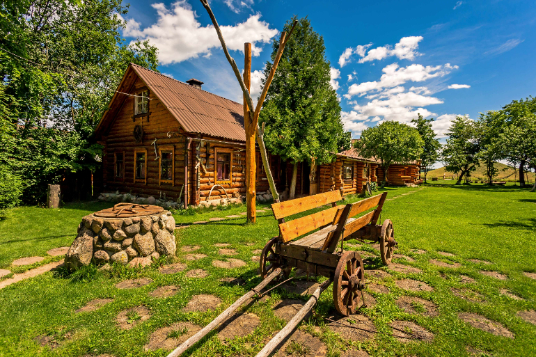 Старинная белорусская усадьба находится в 75 км от Минска. На большой территории расположены два дома, вместительностью каждый до 25 человек, и отдельной баней на дровах для каждого дома, настоящий сеновал и беседки вместительностью до 120 человек оборудованные мангалом и вертелами. Разнообразие активных развлечений не оставит равнодушным никого, это и катания с горки зимой, и купание в собственном пруду, расположенном на территории, летом, а также волейбольная, футбольные площадки, велосипеды, дартс и многое другое. Гости могут поучаствовать в гончарном, кулинарном мастер-классах, национальных обрядах. К услугам гостей есть всё необходимое для комфортного отдыха: wi-fi, DVD, караоке, электрочайник, микроволновая печь, телевизор, холодильник. На усадьбе возможно провести корпоративные и торжественные мероприятия. У нас на усадьбе есть уникальная возможность посетить эко-ферму. Можно не только посмотреть, но и покормить животных. Разнообразное меню из экологически чистых продуктов, приготовленных в белорусской печи, оценит каждый. Всех гостей мы встречаем хлебом солью и чаркой самогона.