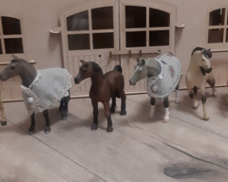 Продается лошадиная ферма в отличном состоянии. Конюшня деревянная. Размеры 100 см. в длину, ширина 30 см, высота 25 см. В комплекте отдадим 9 лошадей с амуницией. Лошади изготовлены из полимерного материала.