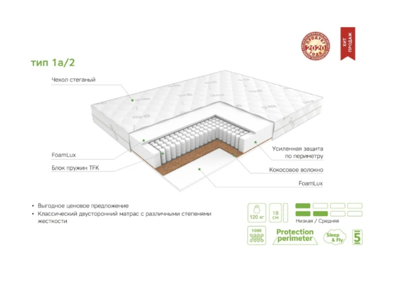 Матрас EOS Идеал 1а/2 80x200 (премиум Aloe Vera). Новый матрас. Не подошёл по размеру на кровать. Самовывоз 17 мкр.
