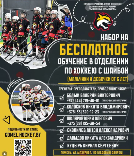 Сделайте шаг в пользу успешного будущего ваших детей!, Государственное учреждение «Хоккейный клуб «Гомель» УНП 49008437.