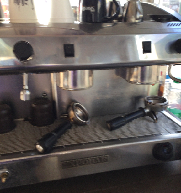 Кофемашина Expobar (Испания). Кофемашина продаётся вместе с кофемолкой. Через систему сама заливается вода, на 2 рожка, удобная, так как можно самим приготовить любой кофе. Взбивает сливки или молоко. Профессиональная , покупали дорого. Засыпаем зерновой кофе.