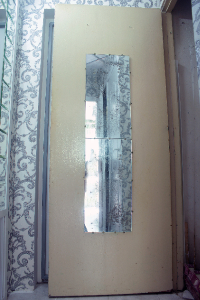 С одной стороны украшена зеркалами.