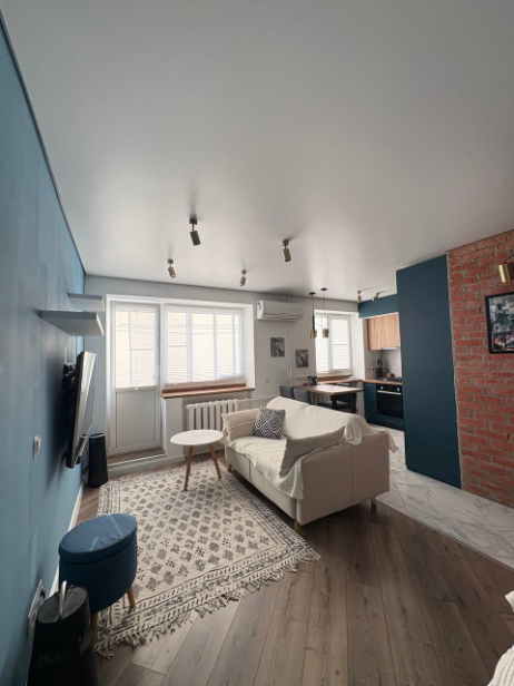 Квартира расположена в кирпичном доме 1964 г. по улице Победы,д. 21 В доме 2021 г был выполнен кап.ремонт В квартире , надежная входная дверь ,окна ПВХ и произведен качественный современный ремонт с заменой проводки и бетонной стяжки на полу Квартира продается с мебелью и встроенной техникой ,телевизором и всеми осветительными приборами Также установлен кондиционер Кухня полностью оснащена всем необходимым вплоть до посудомоечной машины Санузел совмещен ,есть стиральная машина Общая площадь по СНБ 30. 65 кВ.м,жилая 16.89 м , кухня 5.73 кв.м. Есть балкон -застекленный
