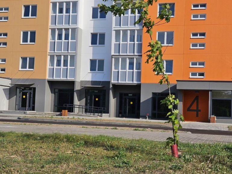 Расположено на 1-м этаже новостройки многоэтажки, с отдельным входом и витринными окнами.