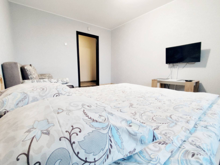 К услугам гостей: свежее постельное белье, полотенца, столовые приборы, стиральная машина, утюг, холодильник, электрочайник, ЖК-телевизор СМАРТ, Wi-Fi. В квартире имеется застекленный балкон. Курение на нем.