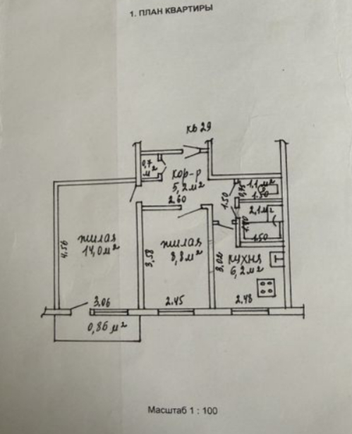 Общая площадь:39 м²