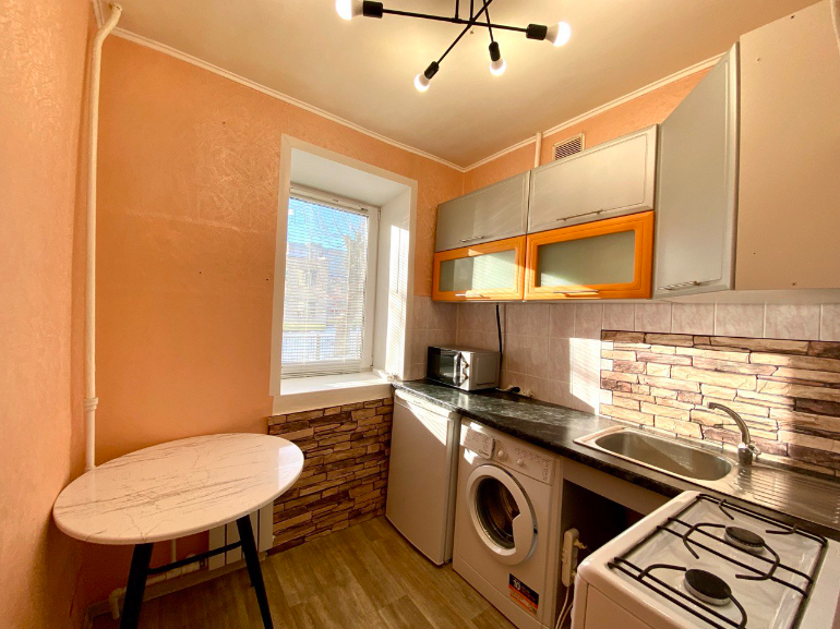 Выставлена на продажу однокомнатная квартира в девятиэтажном кирпичном доме. Советский район, микрорайон «Любенский» города Гомеля. Первый этаж из девяти. Не угловая. Высота потолков- 2,5 метра. Общая площадь-20,8 кв.м., жилая -11,2 кв. м. В квартире выполнен косметический ремонт, все окна стеклопакеты с профилем ПВХ. На полу- ламинат. В стоимость квартиры входит все, что есть на фото: шкаф-купе, диван, кухонный гарнитур, холодильник, стиральная машина, стационарная газовая плита с духовым шкафом, микроволновая печь. Все новое, в рабочем состоянии. Входная дверь- металлическая. Чистая, светлая, теплая квартира. Дом удачно расположен- в шаговой доступности школы, детские сады, большая сеть торговых объектов различного формата. Остановки общественного транспорта. Уникален и любим жителями микрорайон «Любенский», близость реки Сож и оз. Любенского придают неповторимую живописность и колорит этим местам. Благоустроенный пляж, асфальтированные тротуарные дорожки для пеших и велосипедных прогулок. Все это позволяет почувствовать комфорт и экологичность проживания. Продается в связи с расширением жилплощади. Полностью готова к проживанию. Работаем с банковскими кредитами. Поможем при необходимости продать вашу недвижимость для покупки этой. УНП 101214439. Лиц. МЮ РБ № 02240/8 от 17.02.2005 г. Договор 38/18 от 18.02.2026.