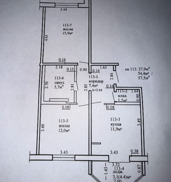 Общая площадь:57,5 м²
