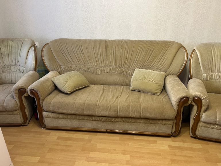 Диван и два кресла в хорошем состоянии. Ткань - велюр.