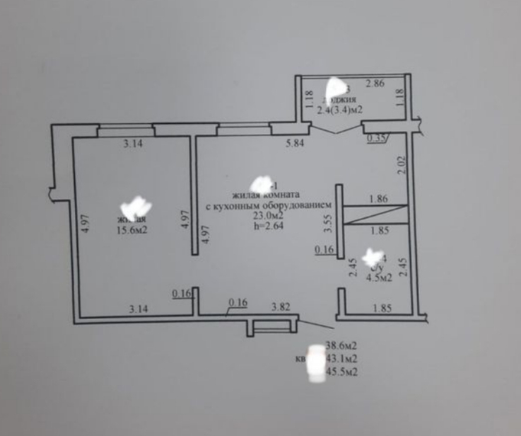Общая площадь:45,5 м²
