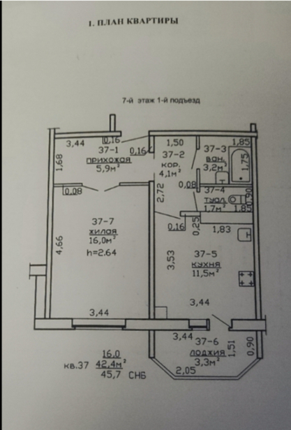 Общая площадь:45,7 м²