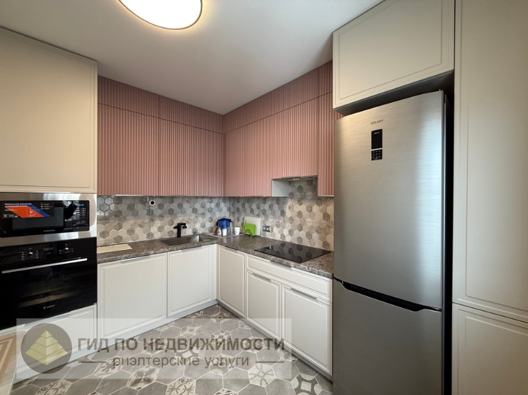 Продается двухкомнатная квартира в г. Гомеле, ул. Головацкого, д. 136. Просторная квартира с евроремонтом и эксклюзивной планировкой. Находится на 10 этаже 14-ти этажного дома 2017 года постройки. Общая площадь – 79.1 кв. м, по СНБ – 82.5 кв.м., кухня – 11 кв.м. В квартире выполнен качественный и дорогой ремонт 2025 г. Продается со всей новой мебелью и техникой. Кухня сделана на заказ от компании «ЗОВ». Варочная панель, духовой шкаф, микроволновая печь, вытяжка, холодильник. В ванной комнате остается новая стиральная и сушильная машины (Haier). Акриловая польская ванна Bonito 170x75. В санузле установлен бойлер на 100 л. В квартире установлена система «теплый пол» производства Голландия (кухня, ванная, сан. узел, прихожая, лоджия). Остается два кондиционера, телевизор TCL 2025г. Три шкафа купе с продуманной организацией вещей. Установлены магистральные фильтры на горячую и холодную воду. В квартире все новое, никто не проживал. Адекватные, не шумные соседи. Под домом парковка для автомобилей. Два лифта.